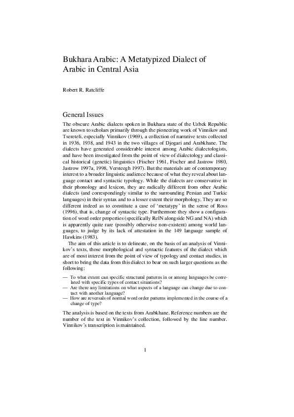 Pdf Buxari A Metatypized Dialect Of Arabic In Central Asia