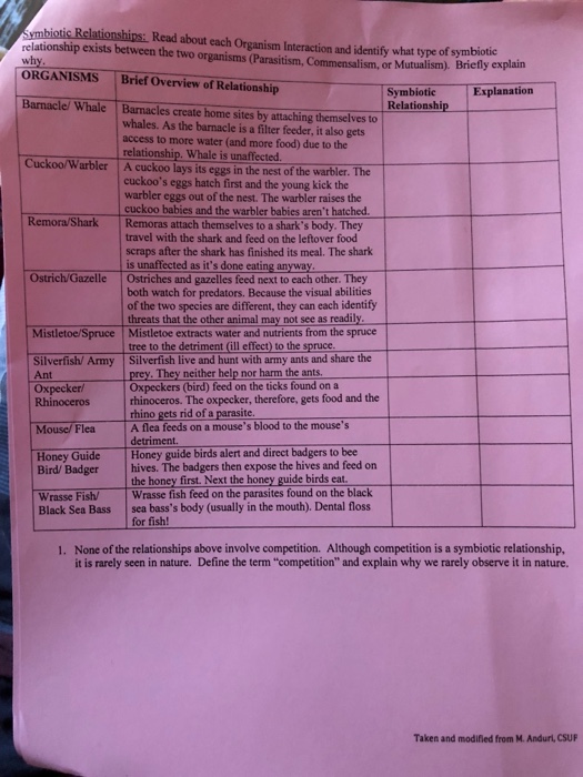 Solved Symbiotic Relationships Read About Each Organism