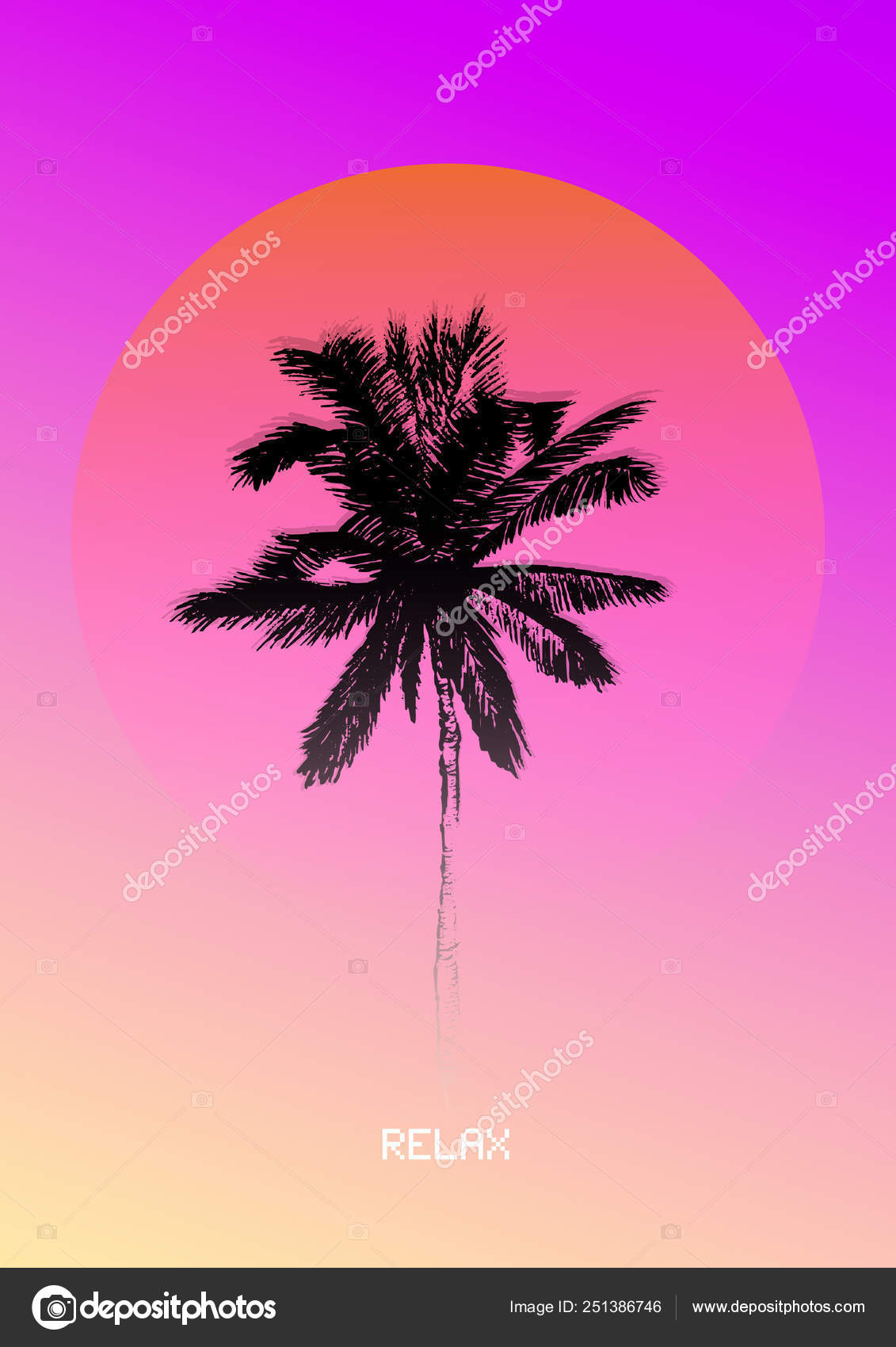 Palm Trees On Bright Sunset Background In 80 S Theme Stock Vector